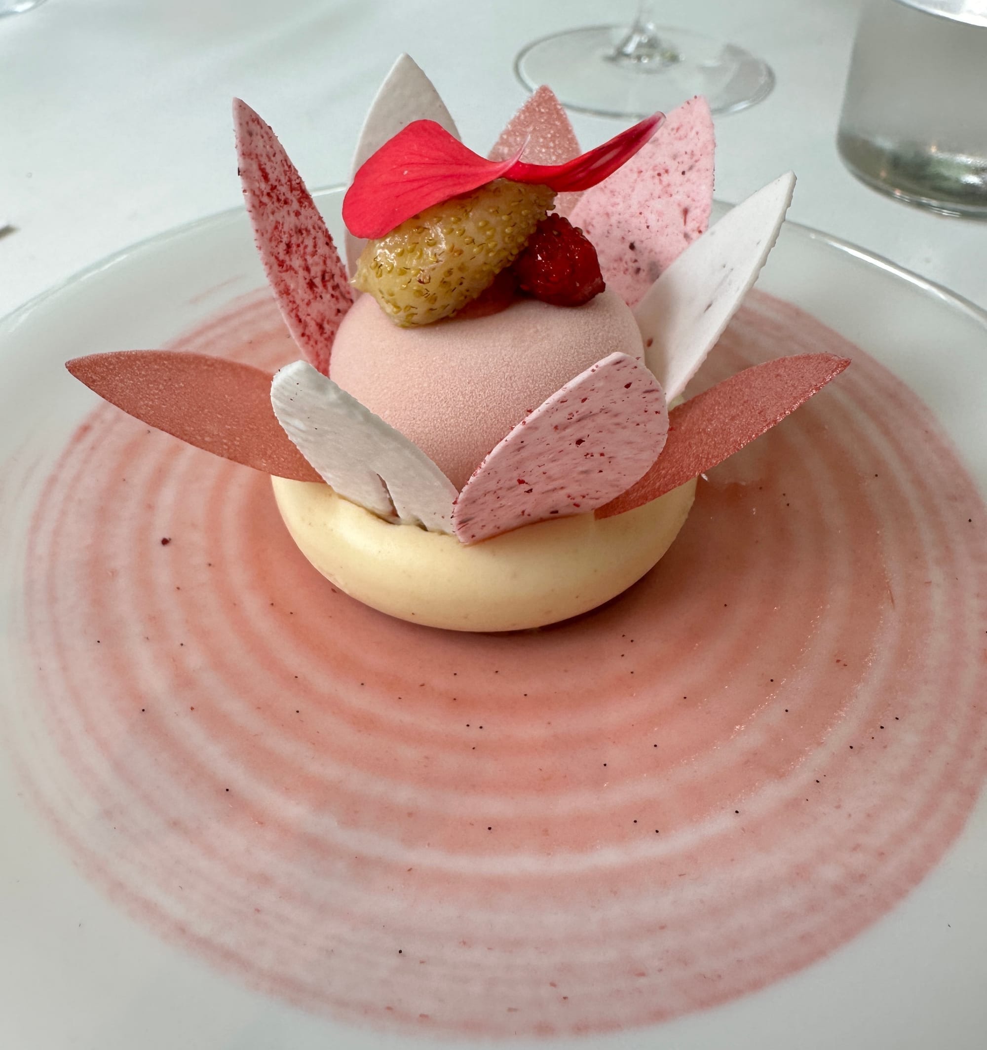 Dessert elevated the experience further, with a vibrant presentation of strawberry varieties enhanced by elderflower, sorrel, sumac, and lovage, followed by a rich and satisfying cheesecake—an elegant conclusion to a memorable meal.