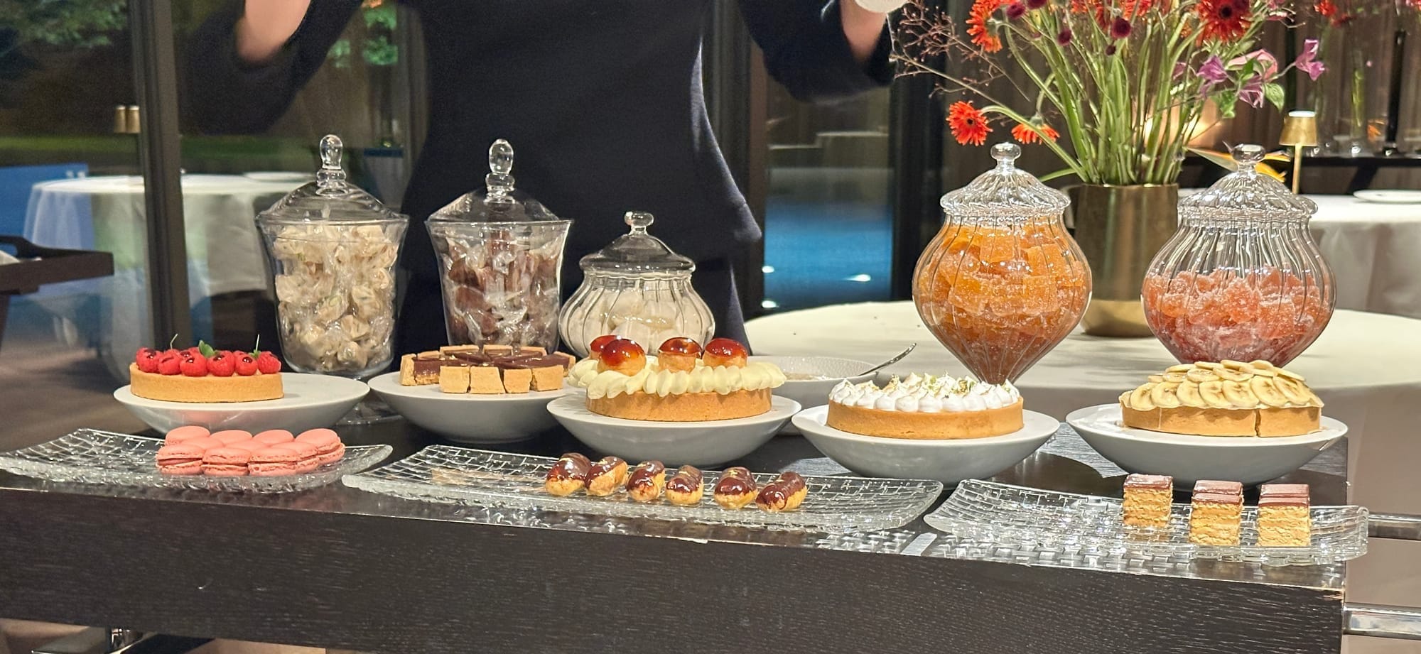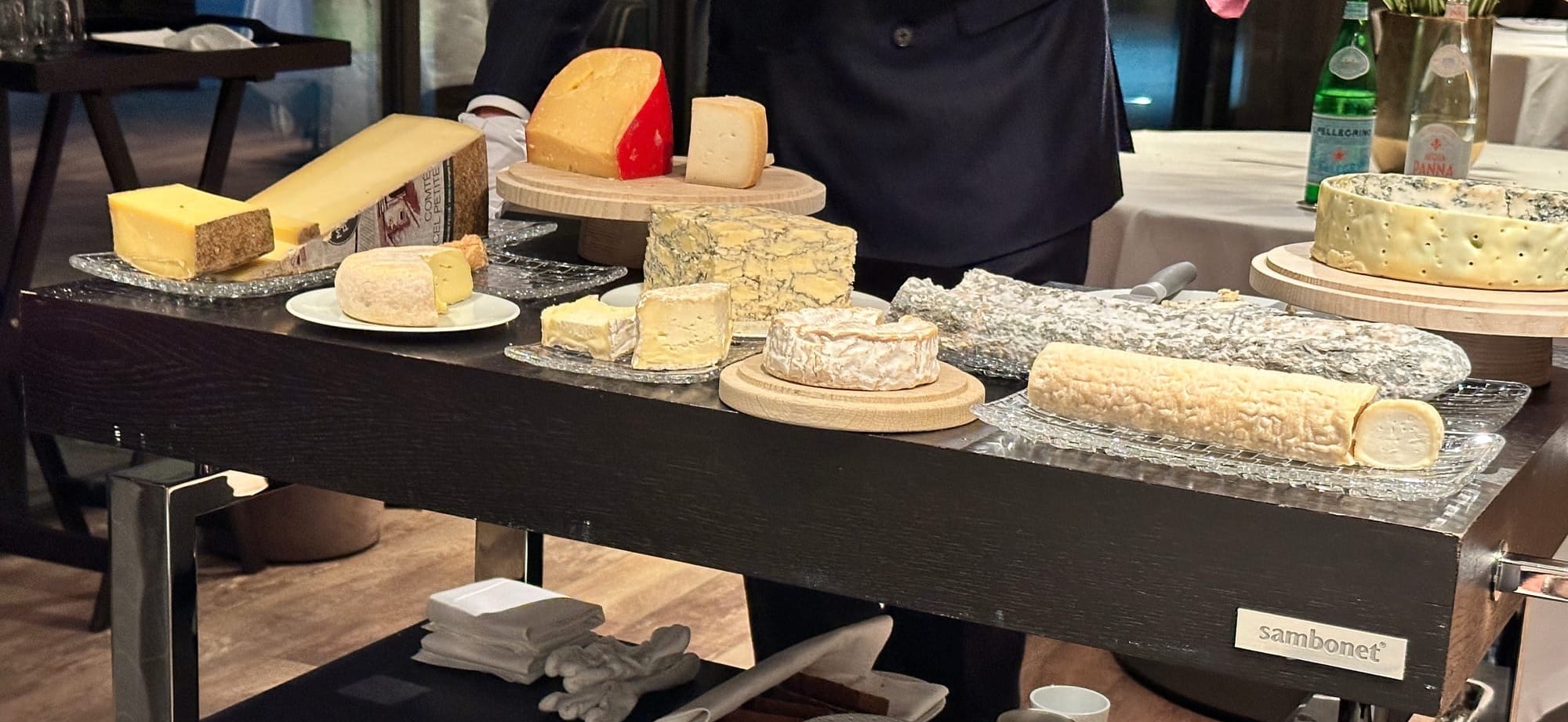 To conclude the meal, guests are invited to indulge in an impressive selection from both a cheese trolley and a dessert trolley, each offering a variety of exquisite options to satisfy every palate.