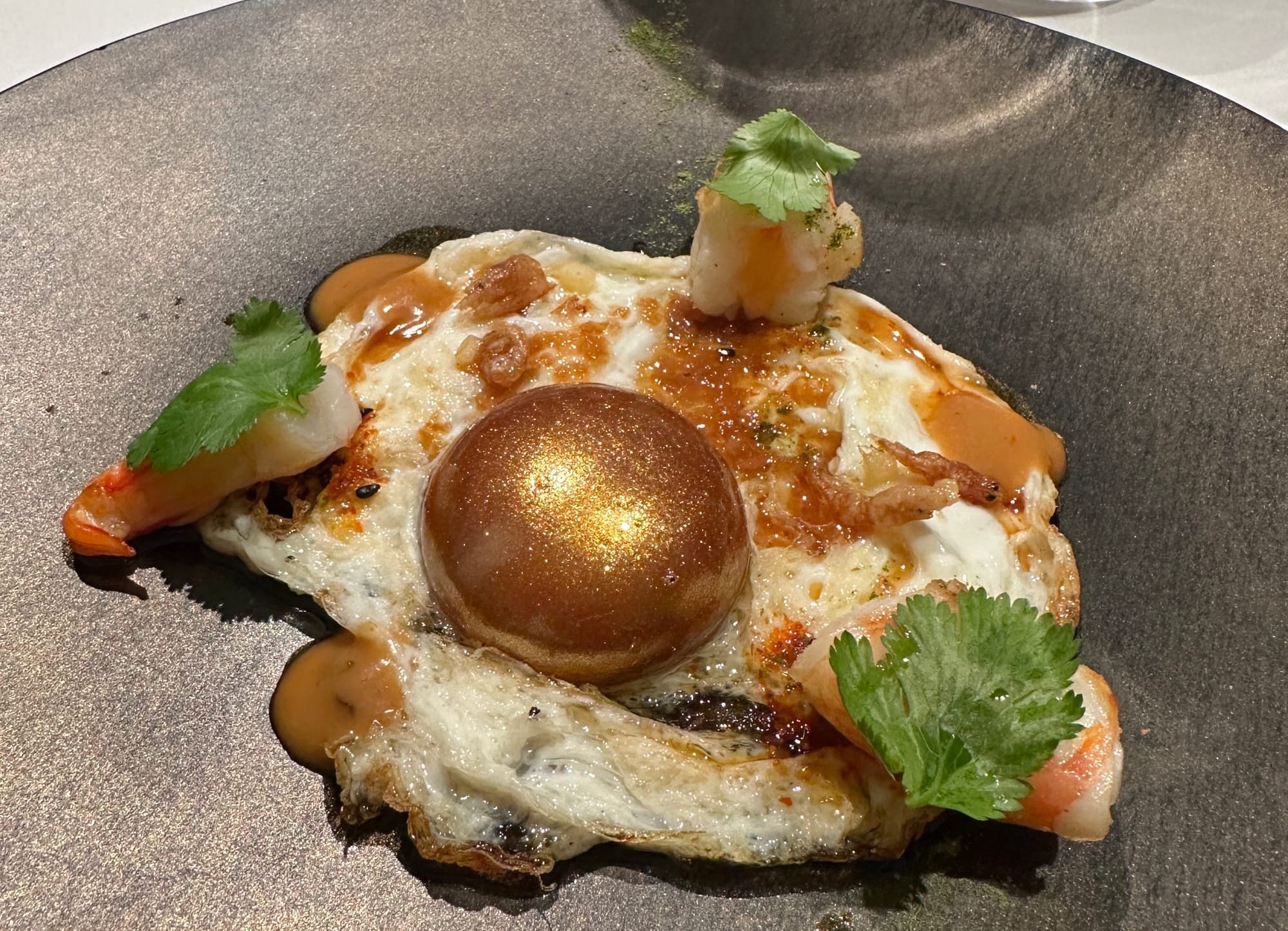 Helmed by a trio of visionary chefs who previously honed their craft at the legendary el Bulli, Disfrutar reinterprets Catalan cuisine through the lens of molecular gastronomy. Highlights included a red shrimp "egg yolk," spaghetti fashioned from squab consommé, aerated smoked butter, and even a liquid salad. The experience continually left us marveling at whether the true genius lay in the flawless execution or the sheer inventiveness of the ideas themselves.